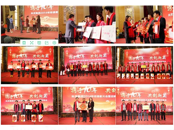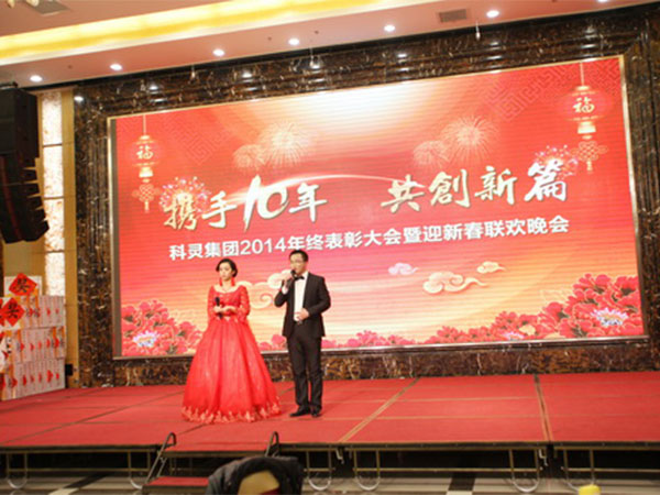 2月10日,科靈集團2014 “攜手10年,共創(chuàng)新篇”年度表彰大會暨新春聯(lián)歡晚會慶典于濰坊君豪大酒店隆重舉行。年會由年度總結(jié)、新年晚會、優(yōu)秀表彰、年終晚宴四部分構(gòu)成,集團公司及子公司全體員工齊聚一堂,共話公司一年來的發(fā)展,規(guī)劃新一年的戰(zhàn)略方向。