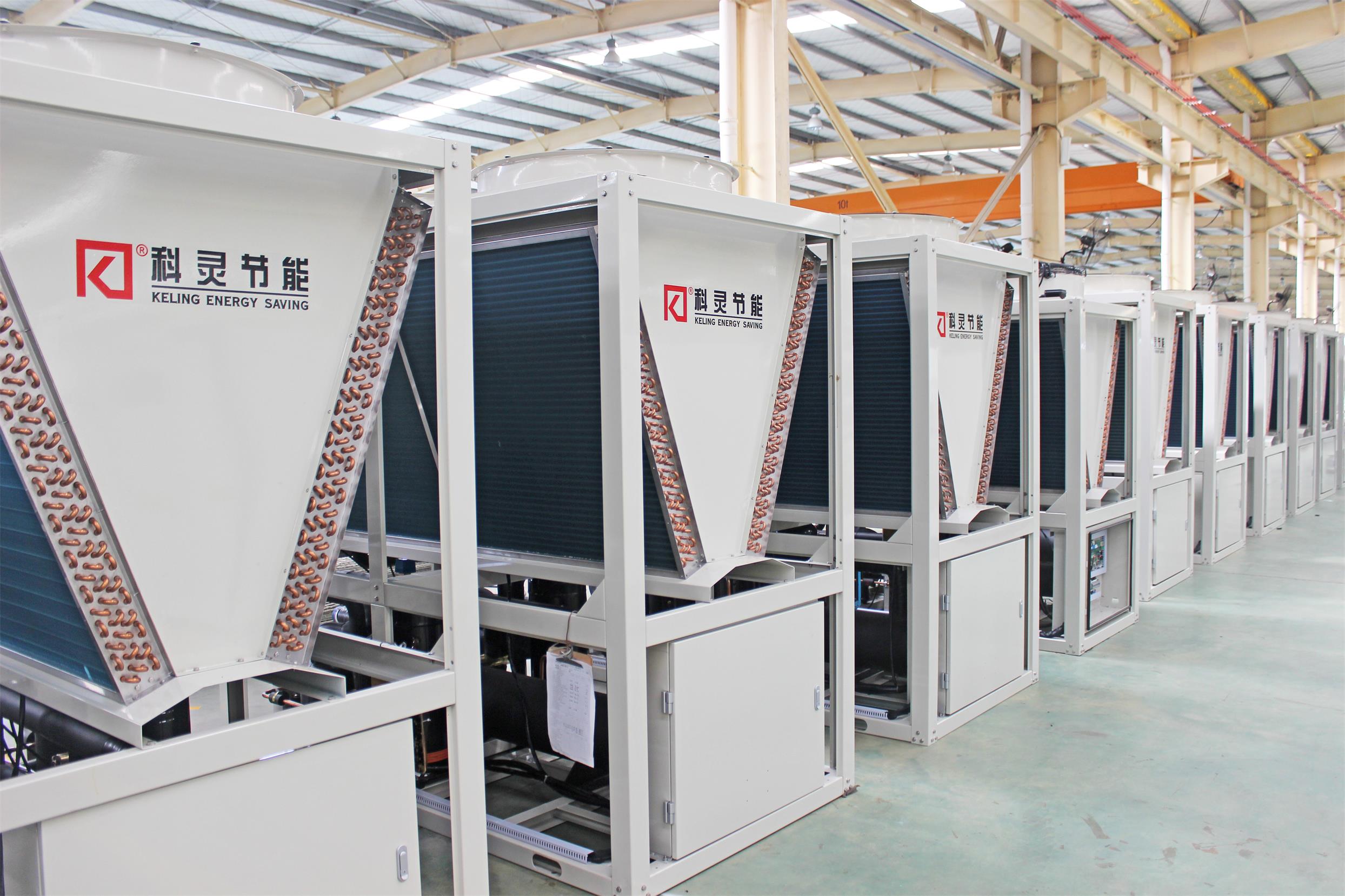 科靈節能生產的空氣源熱泵完全可以解決以上需求,讓我們先從空氣源熱泵運行的基本原理來了解一下:空氣源熱泵是由四個核心部分壓縮機、蒸發器、冷凝器和蒸發器組成,利用液體汽化的方法提取空氣中的能量,經國家權威部門認定中科能空氣源熱泵能源利用系數均在2.5-3.3w/w,也就是給熱泵主機輸入1kw的電能,可以得到2.5-3.3kw的熱能,這里得到的熱能被輸送給水就可以把水加熱至我們需要的溫度(≤50℃或≤60℃);這里得到的熱能被輸送給建筑物,就可以進行供暖(室內溫度可到18℃-30℃)。反之,夏季可實現制冷,給所需空調的空間一個舒適的環境。