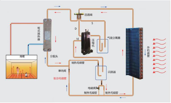 我們從熱泵談起,什么是熱泵,熱泵就是通過將能源界中的分散熱量集中提取,然后聚集輸送到需要的地方,這個過程中需要一種載體,那就是冷媒,也就是我們所熟知的制冷劑,大概的過程就是通過冷媒在蒸發(fā)器中吸熱蒸發(fā)成為熱蒸汽,然后進入壓縮機中,經(jīng)壓縮成為高溫高壓氣體,然后讓冷凝器定壓冷凝為低溫高壓液體,再經(jīng)節(jié)流成為低溫低壓液體,形成如此循環(huán)往復的過程。將原理分析我們不難發(fā)現(xiàn),這些都是應用了日常的物理知識所實現(xiàn)的,沒有任何的燃燒過程等化學反應,因此在一定程度上確保了安全性。