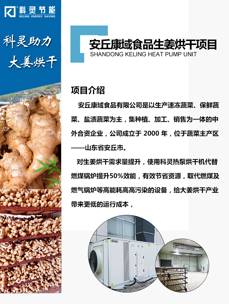科靈熱泵烘干機組給生姜烘干產(chǎn)業(yè)帶來更低的運行成本