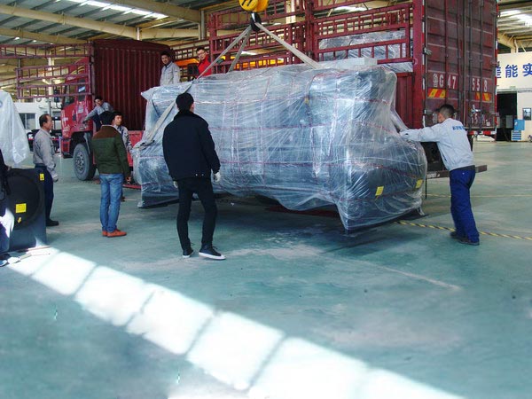 當一輛輛裝滿機組設備的大貨車停放在生產車間門前,裝卸員們正認真地給機組裝車。此刻正值冬去春來,乍暖還寒時,他們卻早已敞開衣扣,臉上爬著細密的汗珠。一臺車裝完了,趕緊挪開地方,另一輛車開過來繼續裝機。車間各部門全力以赴,確保按期按質完成發貨任務。