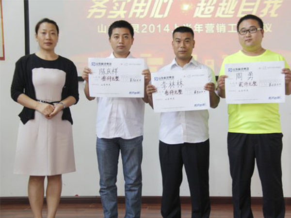 81日的下午,科靈集團2014上半年銷售工作會議在沂蒙紅色寫生基地多功能會議室召開。集團董事長葛建民、副總經理馬曙瑩、范之敬、劉春海及各大區銷售經理、公司全體銷售精英、技術部、財務部、銷售辦公室等管理部門負責人等出席了本次會議。大會聽取了上半年的營銷工作總結報告等相關事宜,并表彰了上半年綜合評定的優秀經理、先進經理、銷售精英和先進業務員等的十一名集團員工,并由葛葛建民董事長對2014年下半年的工作提出了希望和要求。