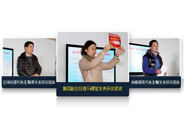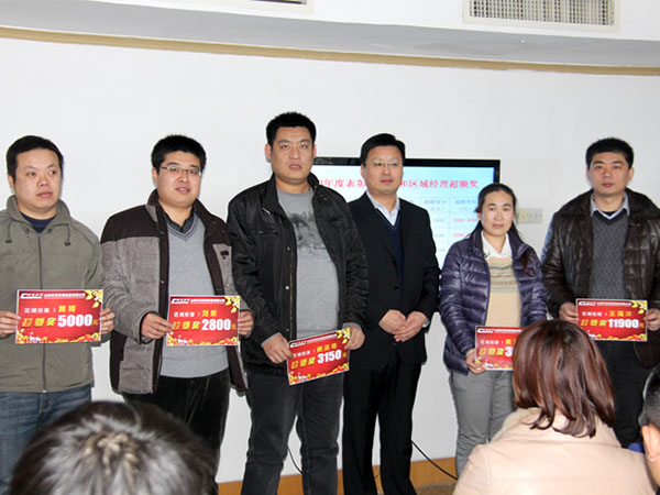 隨后集團董事長葛建民、副總經理馬曙瑩、范之敬、劉春海為上年度完成業績超額的大區經理及銷售精英等進行現場表彰頒獎。獲獎代表發表獲獎感言,集團副總經理馬曙瑩代表獲獎員工分享“知識與思維”的銷售感悟,鼓勵大家合理運用資源人脈,發揮專業優勢,抓住機遇,勇創佳績。