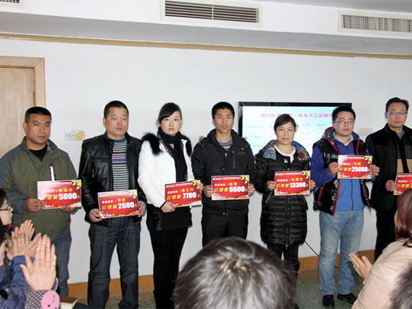 “金蛇狂舞辭舊歲,駿馬奔騰展宏圖”。2月14日,由人力資源經理單渭菊主持的科靈2013年度銷售工作總結表彰大會在公司會議室如期召開。集團董事長葛建民、副總經理馬曙瑩、范之敬、劉春海及各大區銷售經理、公司全體銷售精英、技術部、財務部、銷售辦公室等管理部門負責人等共90多人出席了本次會議。大會對上年的營銷工作進行了總結討論,并表彰了榮獲科靈集團綜合評定的區域經理超額獎勵、銷售精英超額獎勵、大單突破特別獎勵等的十五名集團員工。末尾由葛建民董事長對集團銷售人員提出2014年度工作展望,期待全體銷售人員創新銷售模式,拼搏創造輝煌,取得更大更好的業績。