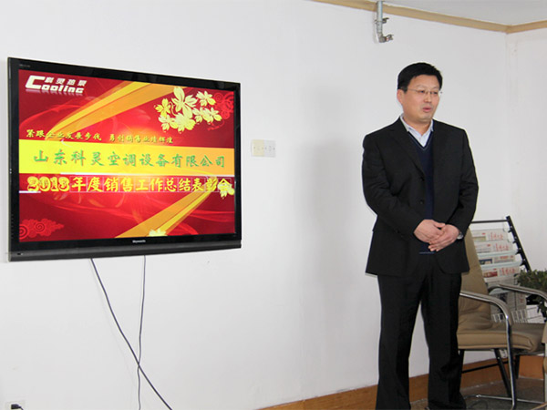 銷售總經理范之敬首先回顧上年度主要銷售工作,總結提出:調整銷售政策,加強績效考核;加強團隊建設,提高銷售能力;技術展會交流,提升品牌形象;狠抓重點項目,全力業績突破。通過對上一年的銷售合同及回款等的數據分析,范總肯定了山東、華北、中南、西北大區銷售任務的完成情況,工業應用項目有所突破等。也指出公司業務發展尚不均衡,存在一定空白市場,地源熱泵市場開發潛力巨大等等情況。